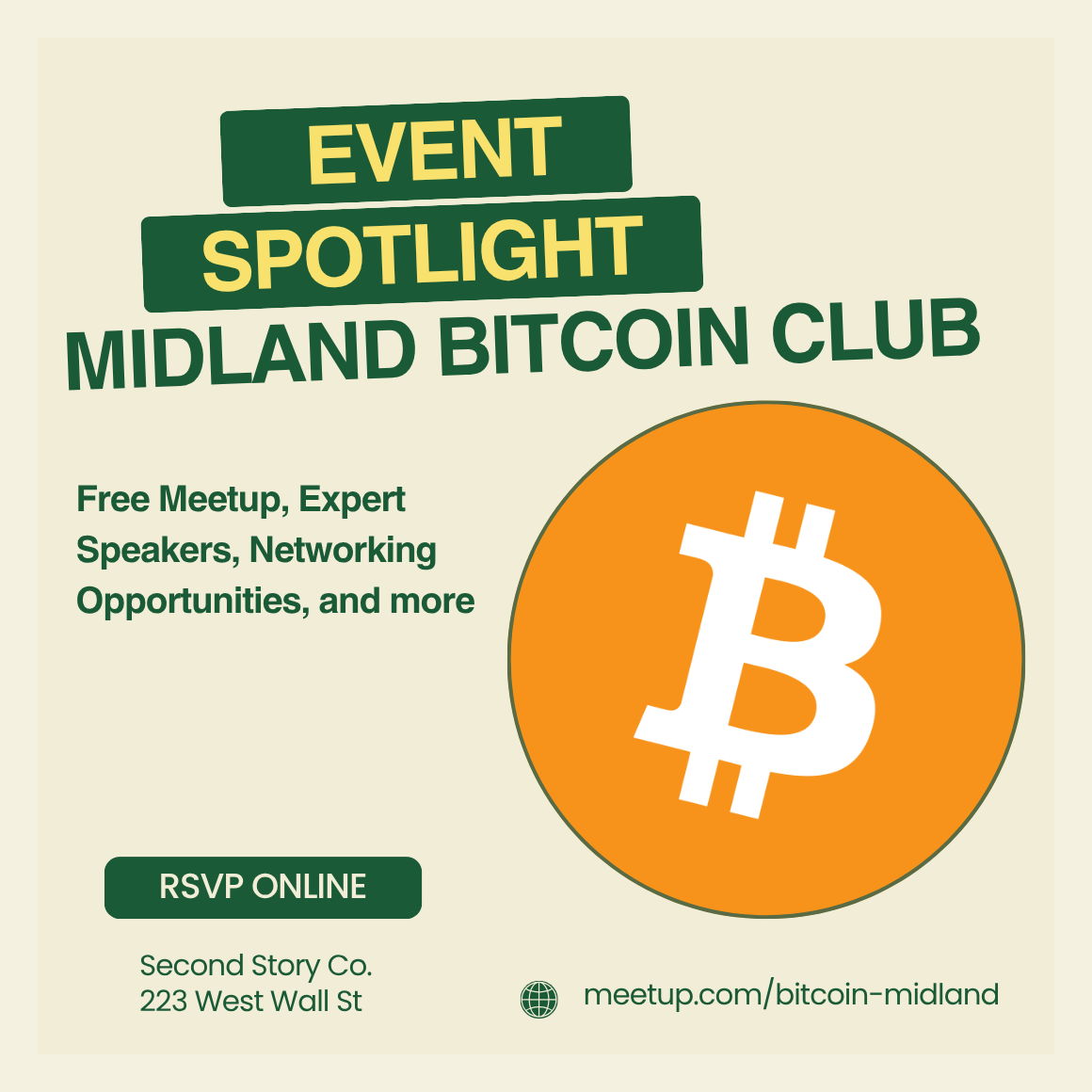 We host the Midland Bitcoin MeetUp every month. Join this amazing community to meet us in person and learn about Bitcoin at this free event.